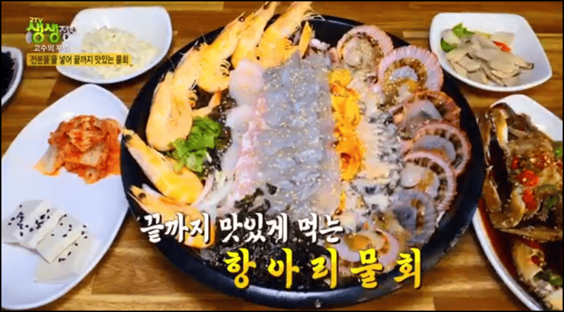 영상에서만 봐도 어마어마한 양의 물회를 보실 수 있습니다. 바닷가 바로 옆에 있는 식당인 만큼 아주 싱싱한 해물들을 만나보실 수 있습니다.