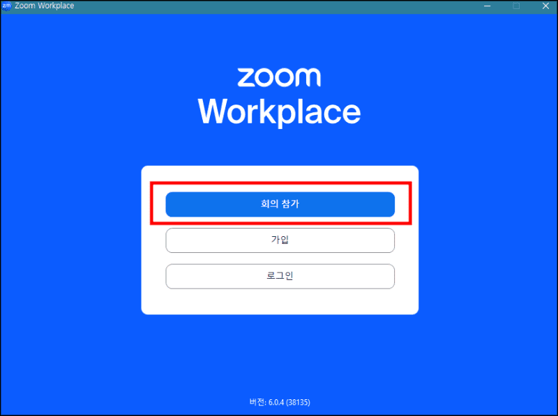 줌 참여자들은 설치 후 나타나는 첫 화면에서 회의참가를 눌러줍니다.