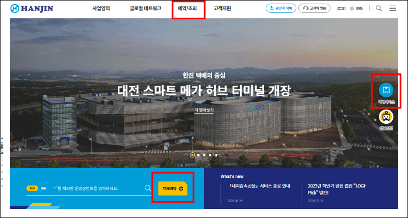 한진택배 메인화면에서 택배예약을 누른 후 바로 진행하실 수 있습니다.